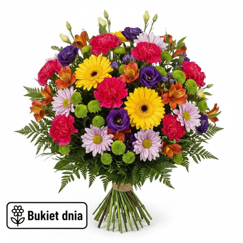 Bukiet Dnia to codziennie inna kompozycja przygotowywana przez doświadczoną florystkę z najświeższych kwiatów dostępnych w kwiaciarni. Każdy bukiet powstaje z myślą o estetyce i harmonii. Florystka łączy kwiaty sezonowe z całorocznymi, tworząc elegancki i naturalny bukiet. To doskonały wybór, gdy chcesz sprawić radość bliskiej osobie bez wskazywania konkretnego rodzaju kwiatów. Zamów Bukiet Dnia z dostawą na terenie Krakowa i pozwól nam zadbać o każdy detal.