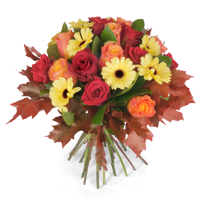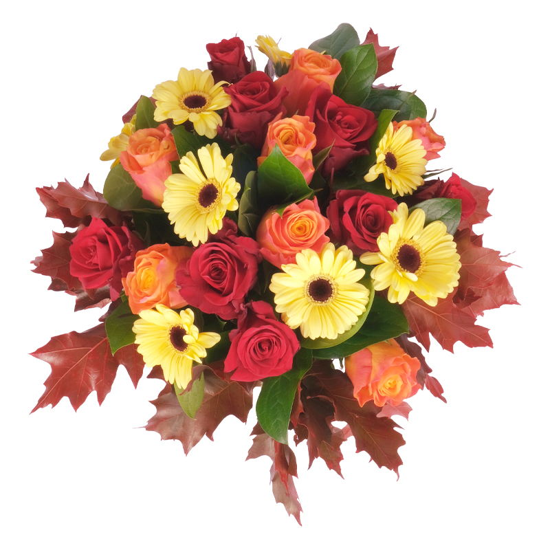 Ten bukiet to kwiatowy hołd dla natury i elegancji. „Obfita Jesień” łączy w sobie subtelność róż, wdzięk gerber i naturalne piękno liści klonu. Każdy element współgra w idealnej harmonii. Wnosi do wnętrza spokój i pozytywną energię. To kompozycja pełna ciepła, która rozjaśni dzień obdarowanej osobie!